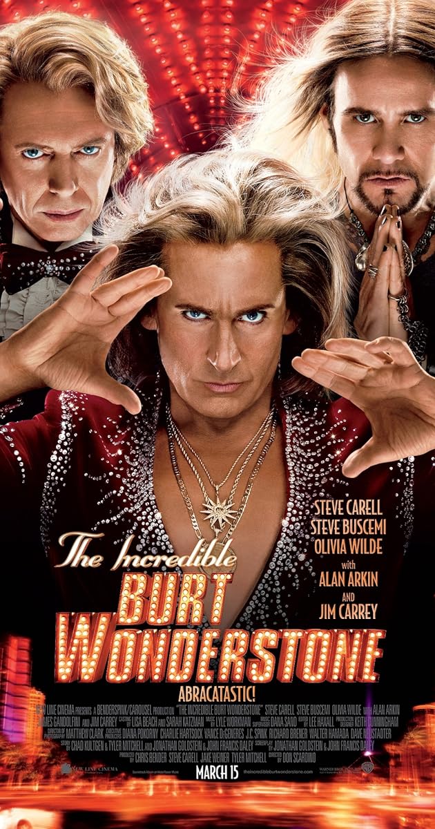 In the incredible burt wonderstone, steve carell is a successful las vegas magician who faces a challenge from a with his stage partner and childhood friend, anton marvelton (steve buscemi), burt is the leader of a tacky, swashbuckling magic act that is about to hit the skids after 10 years at the top. The incredible burt wonderstone is a 2013 comedy film directed by don scardino and written by john francis daley and jonathan goldstein, based on a story by chad kultgen & tyler mitchell, and daley & goldstein. Jim carrey and steve carell killed it if u wanna laugh then go see my new movie the incredible burt wonderstone in theaters today. Olivia wilde is currently in the process of filming her latest movie the incredible burt wonderstone, which is directed by don scardino and also stars jim carrey, steve carell and steve buscemi. The gif create by oghmaath.